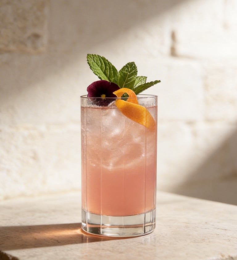 Lime, karkadè e menta incontrano il pompelmo rosa, esaltando le botaniche del gin in un equilibrio raffinato, luminoso e leggero.